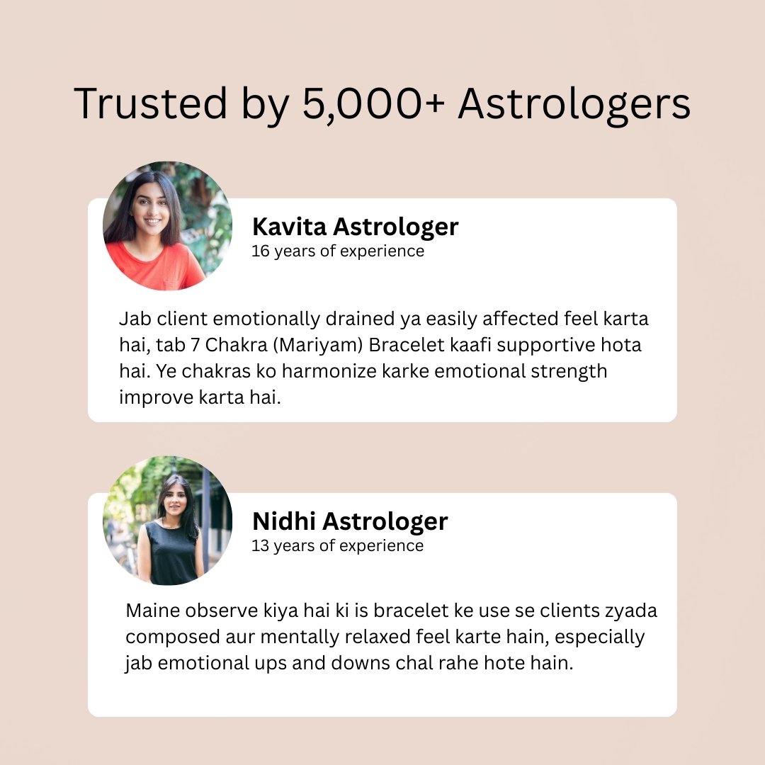 The 7 Chakra Mariyam Bracelet is designed to balance the body’s energy centers and support emotional and spiritual harmony. Mariyam stone is known for its calming and grounding properties, helping reduce stress and improve inner peace. This bracelet is often used during meditation and spiritual practices to enhance mindfulness and create a balanced flow of energy throughout the body.