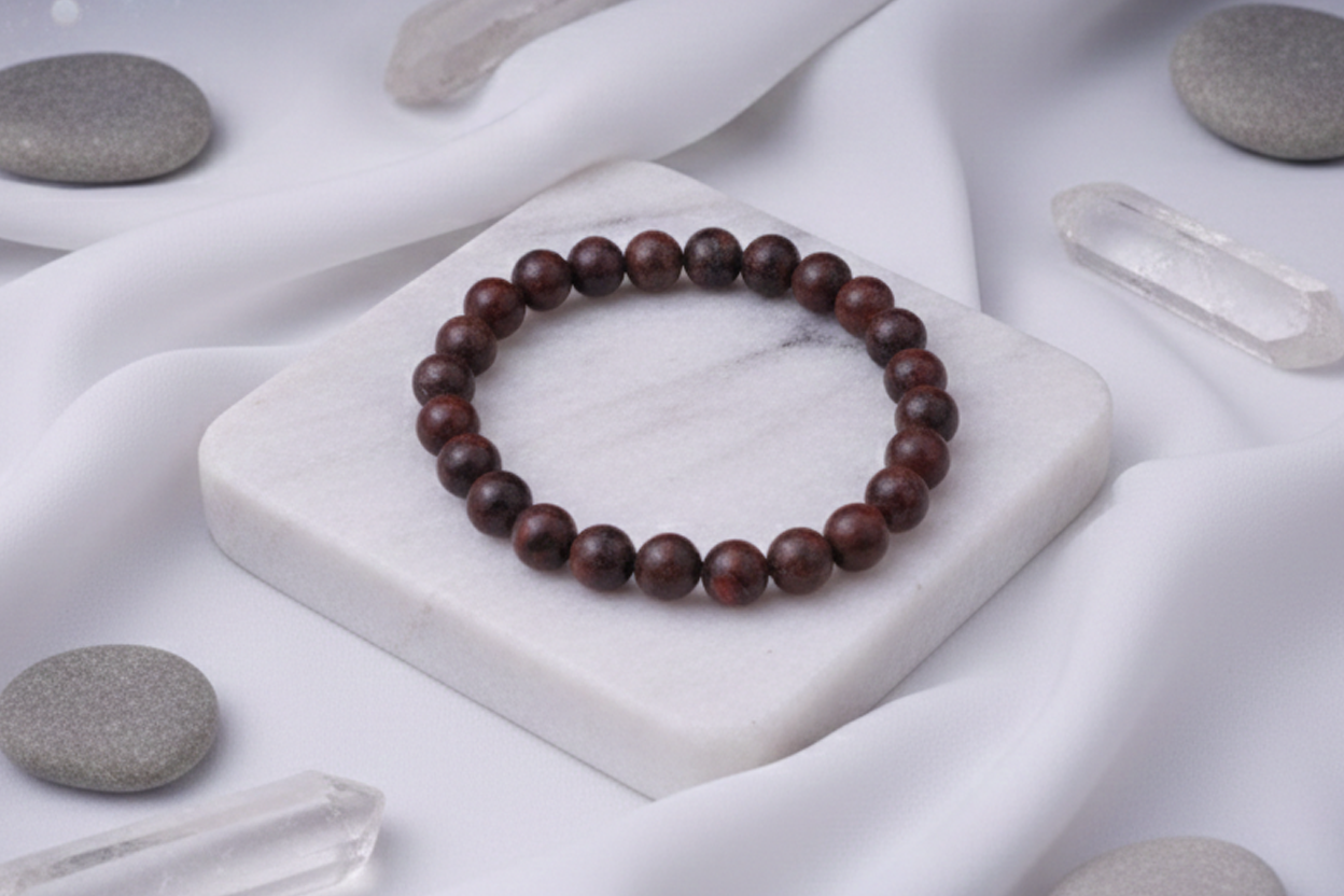A grounding bracelet made with Red Jasper stones known for promoting strength, stability, and emotional balance.
